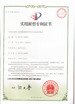 實用新型專利證書--多級反滲透系統(tǒng)前后級間的流量控制裝置