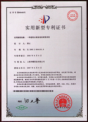 實用新型專利證書--一種蒸餾水制造系統(tǒng)