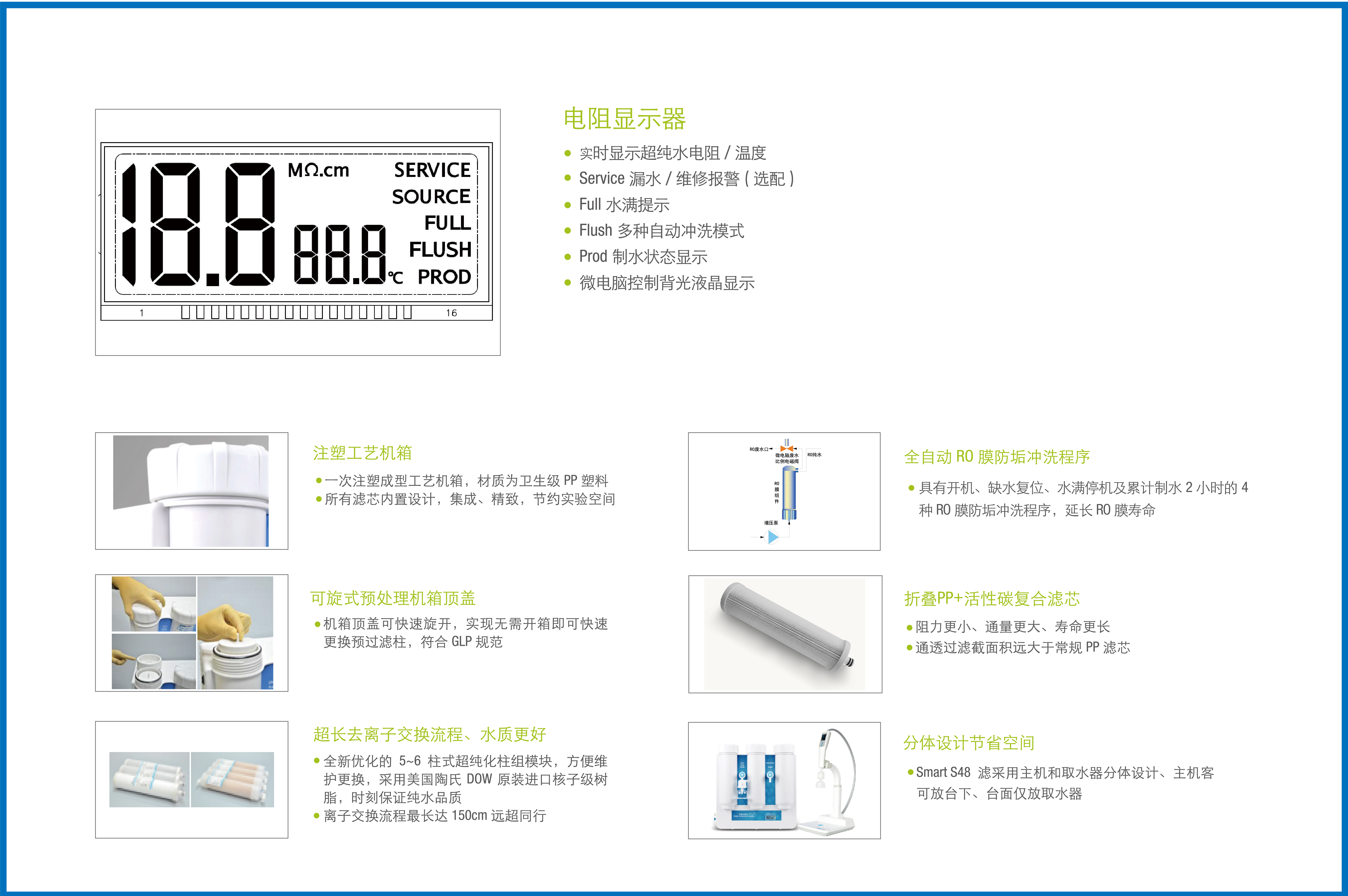 | 系統(tǒng)配置 | 主機(jī)(含1套純化柱)+標(biāo)配內(nèi)置1.8L壓力桶+TDS/電導(dǎo)率測(cè)試筆+附件包 | |||